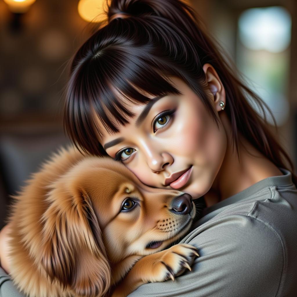I love dogs, we have one in our home. It’s my mothers dog but they are fully a part of our family, an elderly small dog with black colour fur and grey tones.